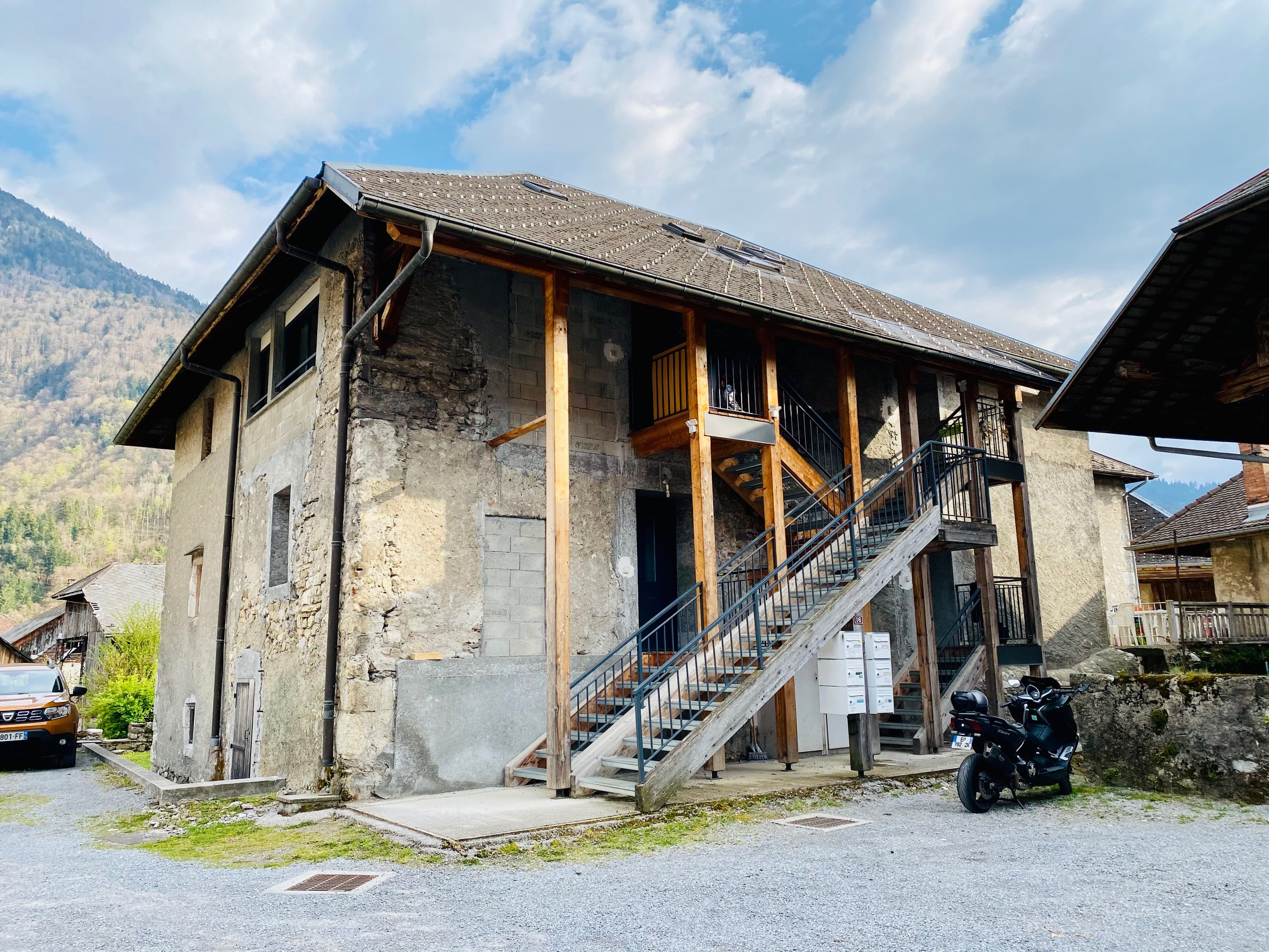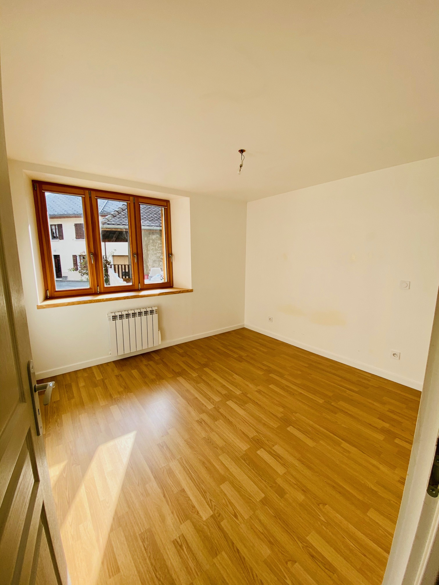 MARLENS Type 3, centre village, 16 rue au carray, 1er étage avec cuisine en partie équipée, 2 chambres, un balcon, une cave, chauffage poêle à bois, 1 parking privatif.