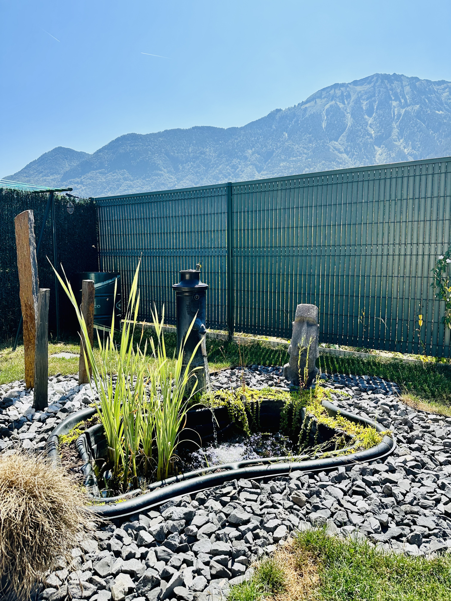 Superbe terrasse avec une vue dégagée sur les montagnes environnantes.