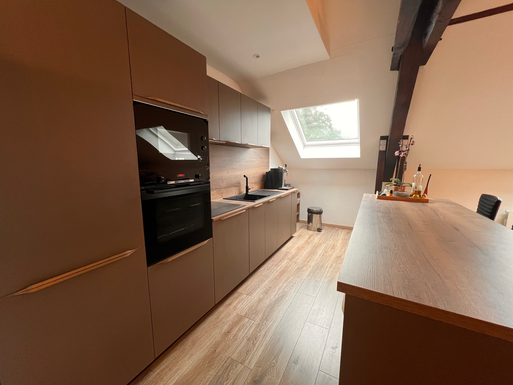 Comprenant un séjour avec cuisine équipée, un dégagement, deux chambres, une salle de bain avec WC.