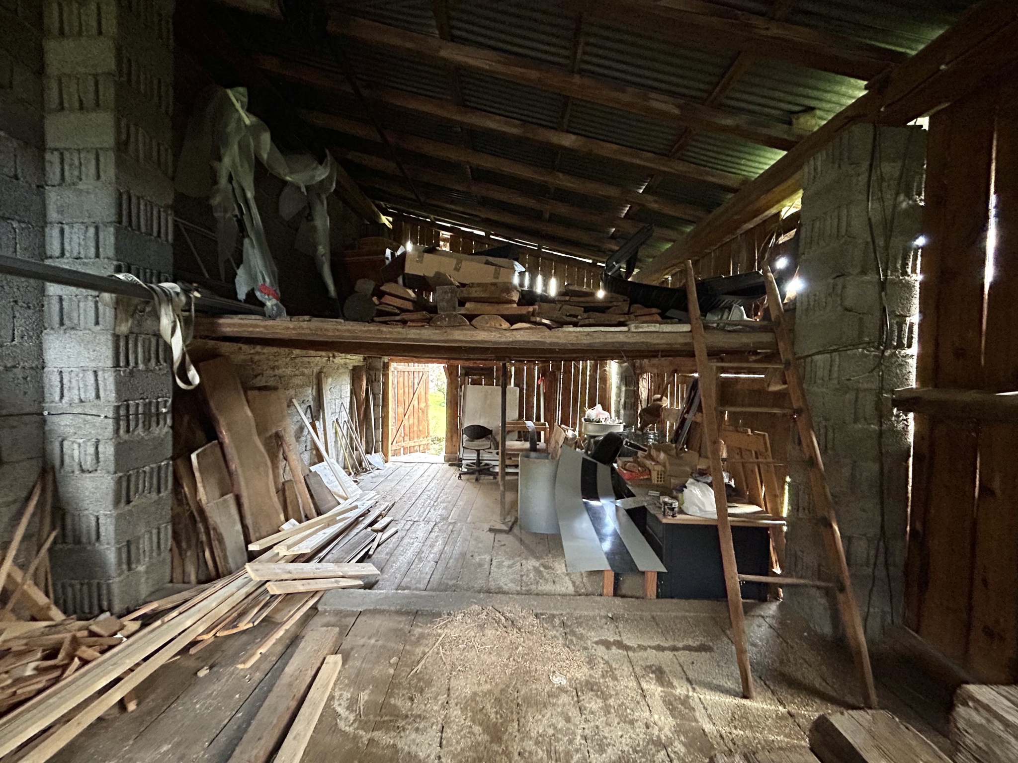 Le bien comprend également la moitié d'une grange, idéale pour créer un espace de stockage, un atelier ou tout autre aménagement.