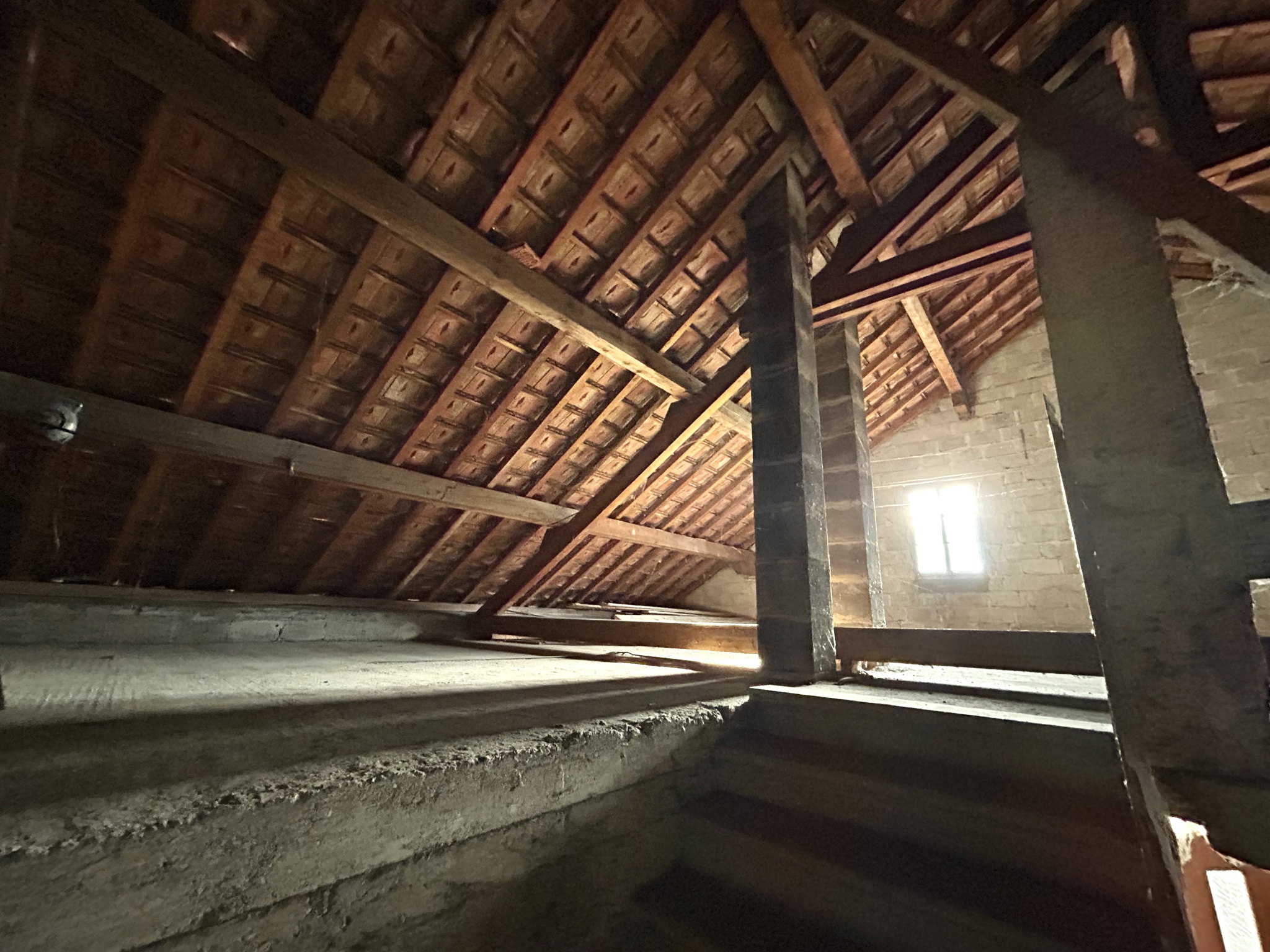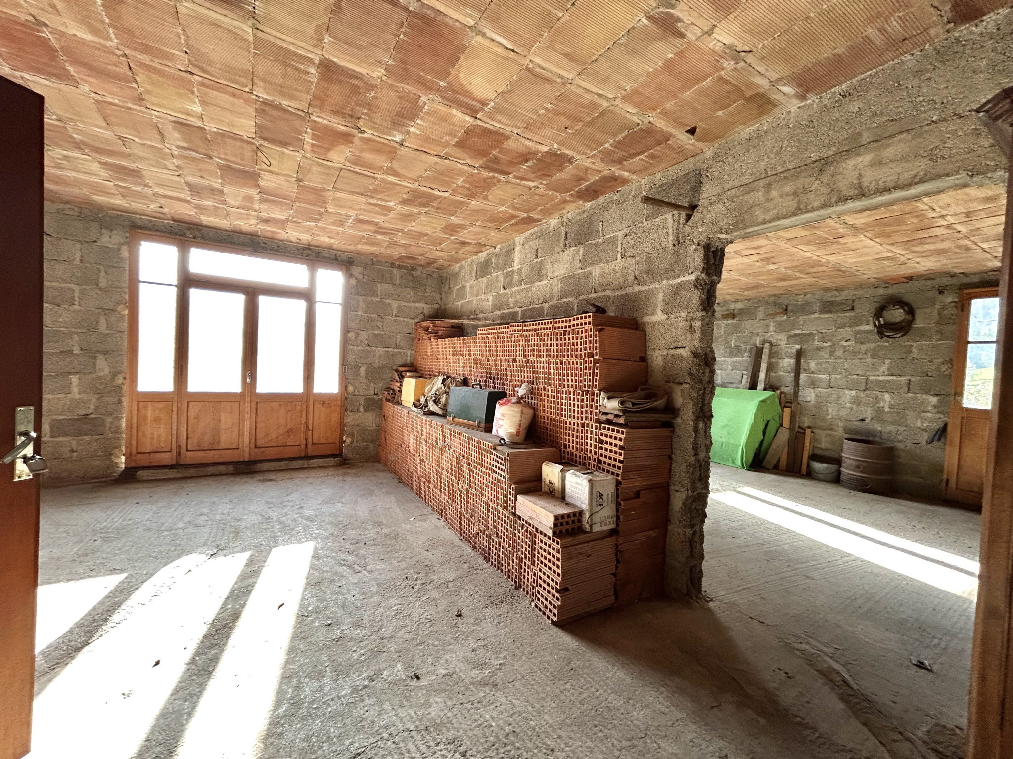 Le premier étage comprend deux chambres, un couloir avec balcon, et donne accès à un vaste grenier brut ainsi qu'à une terrasse extérieure en béton.