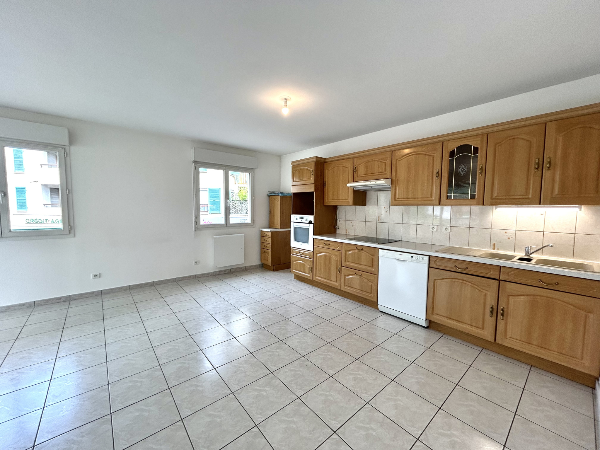 FAVERGES CENTRE VILLE. Rue de la république. Appartement de type 4 au 1er étage avec ascenseur, un hall d'entrée avec débarras. Une salle de bains, un wc, 3 chambres, un salon/séjour ouvert sur une cuisine équipée, un balcon, une cave, et un garage.