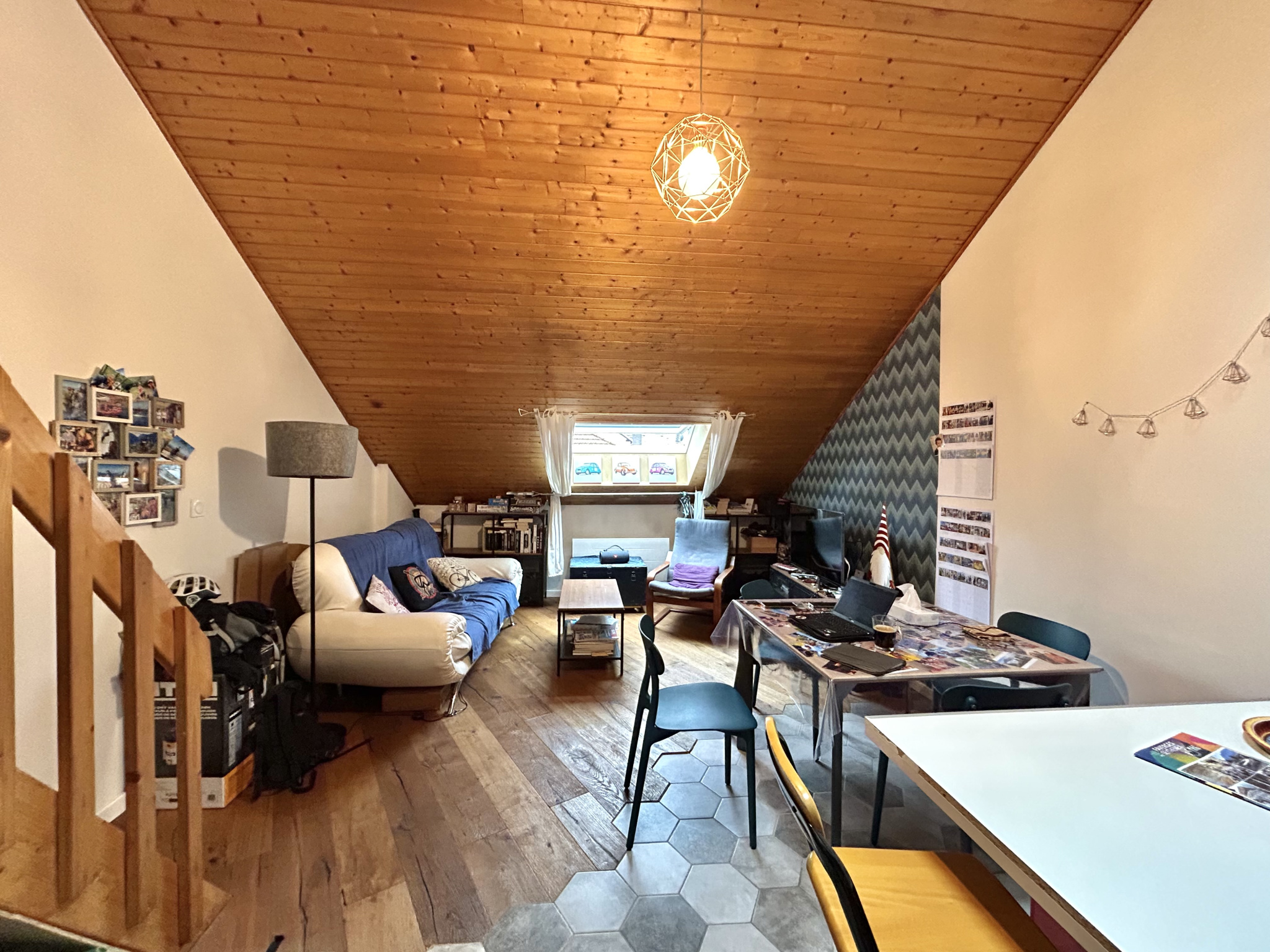 Situé au troisième étage, en plein centre-ville de Faverges, rue Carnot, cet appartement en duplex de type 4 se compose d'une entrée, d'une cuisine ouverte sur le séjour, d'une salle de bains avec wc, et d'une chambre.