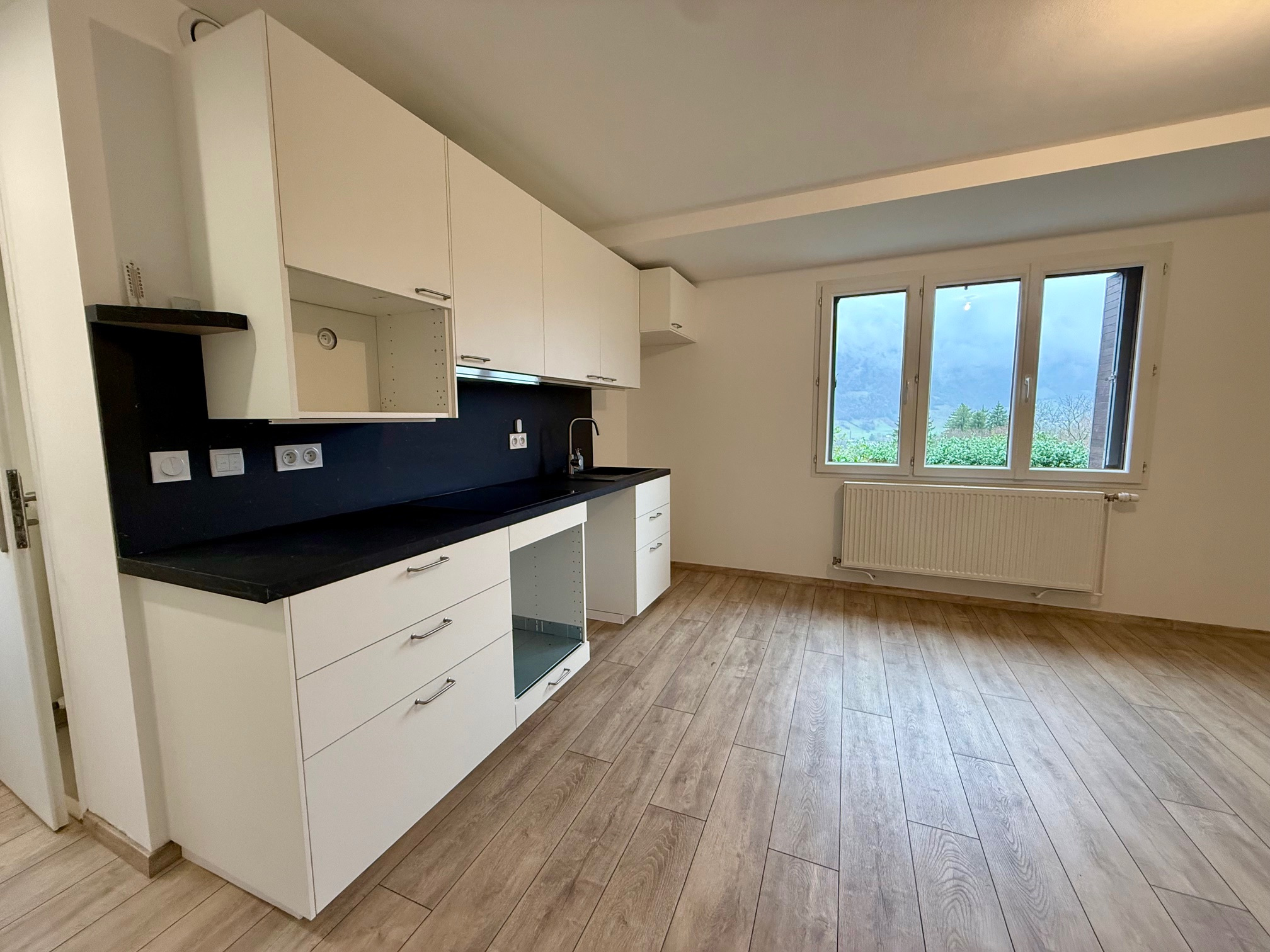 Il se compose d'une entrée desservant une cuisine aménagée ouverte sur le séjour, une chambre, une salle de bains et un wc.