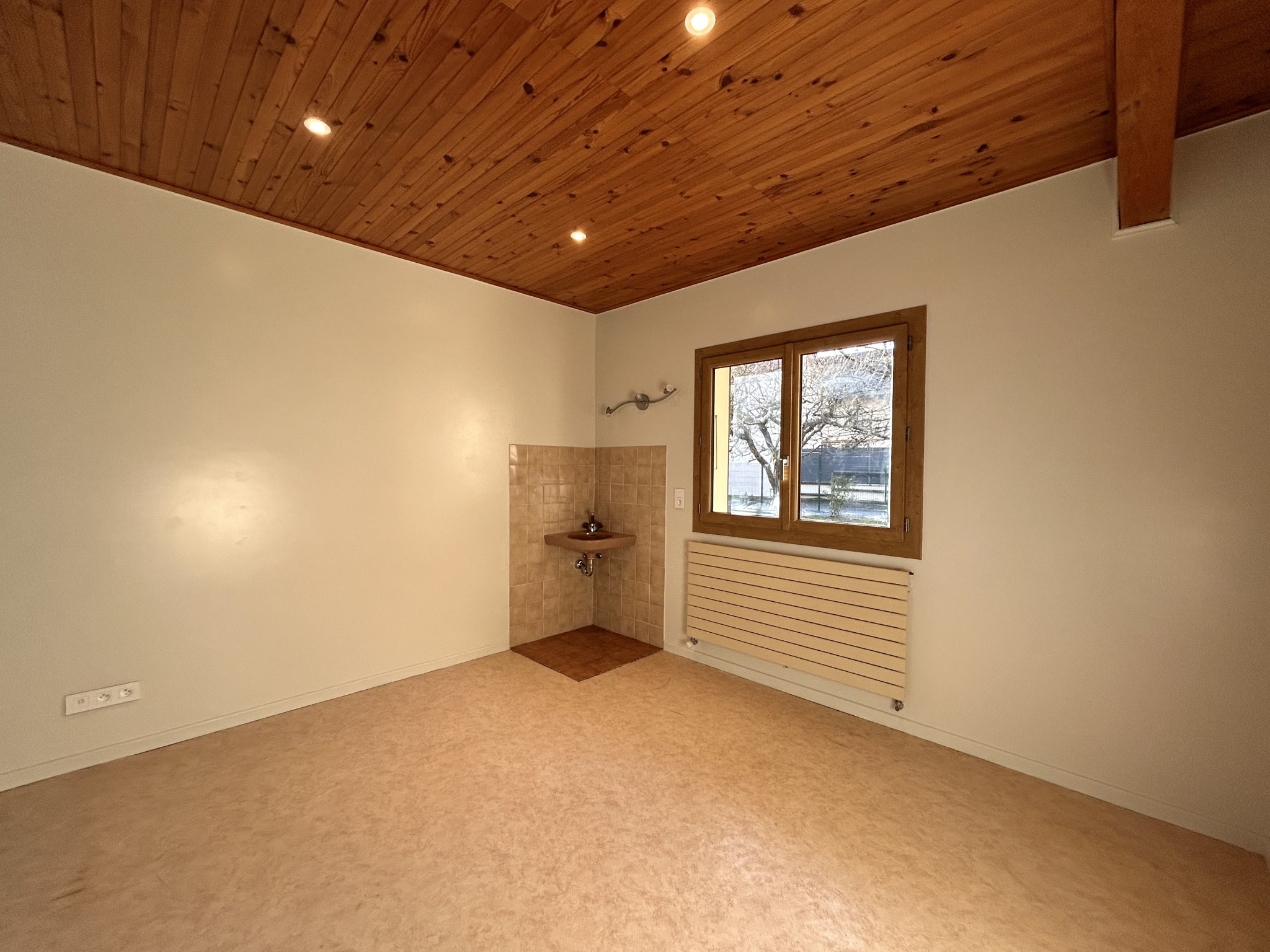 Il se compose au rez-de-chaussée d'un hall d'entrée avec placard et cellier ainsi que d'une chambre. Un demi-niveau accueille un bel espace séjour.