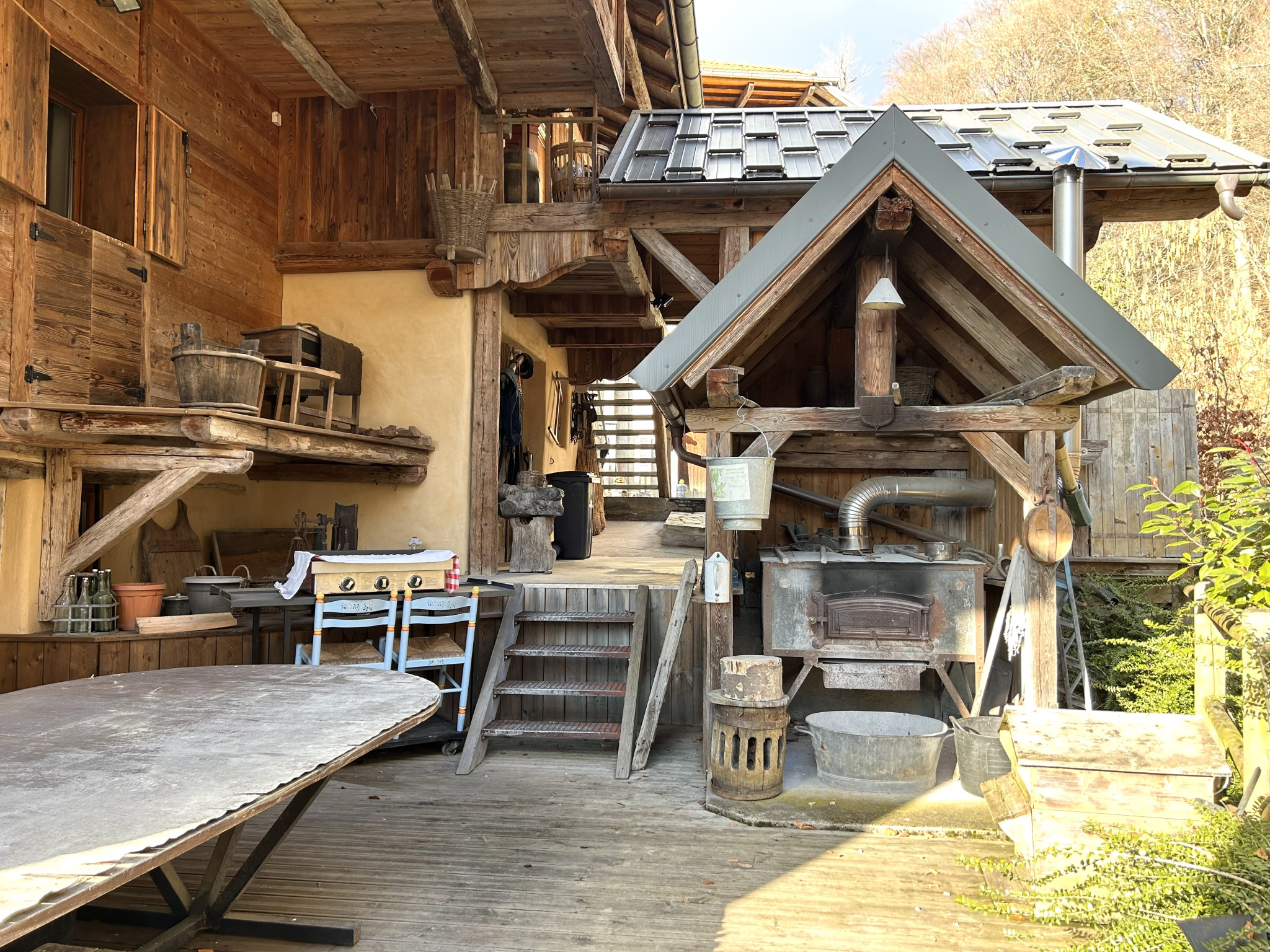 À l’extérieur, vous profiterez d’une vaste terrasse avec four à bois, dans un cadre calme et verdoyant, en bord de ruisseau, propice à la détente et aux moments conviviaux.