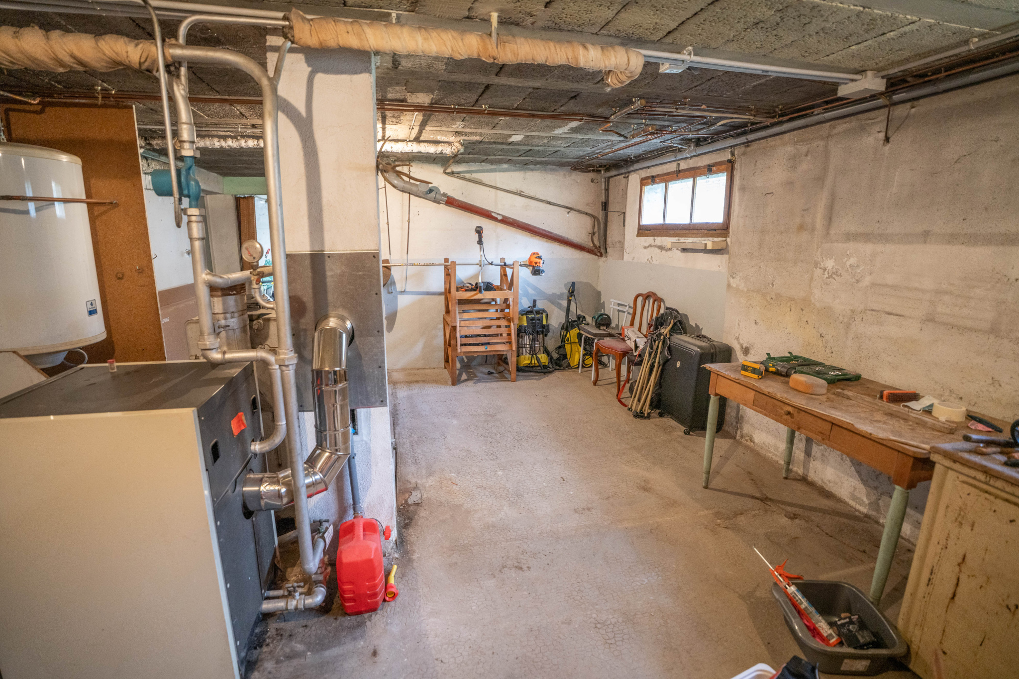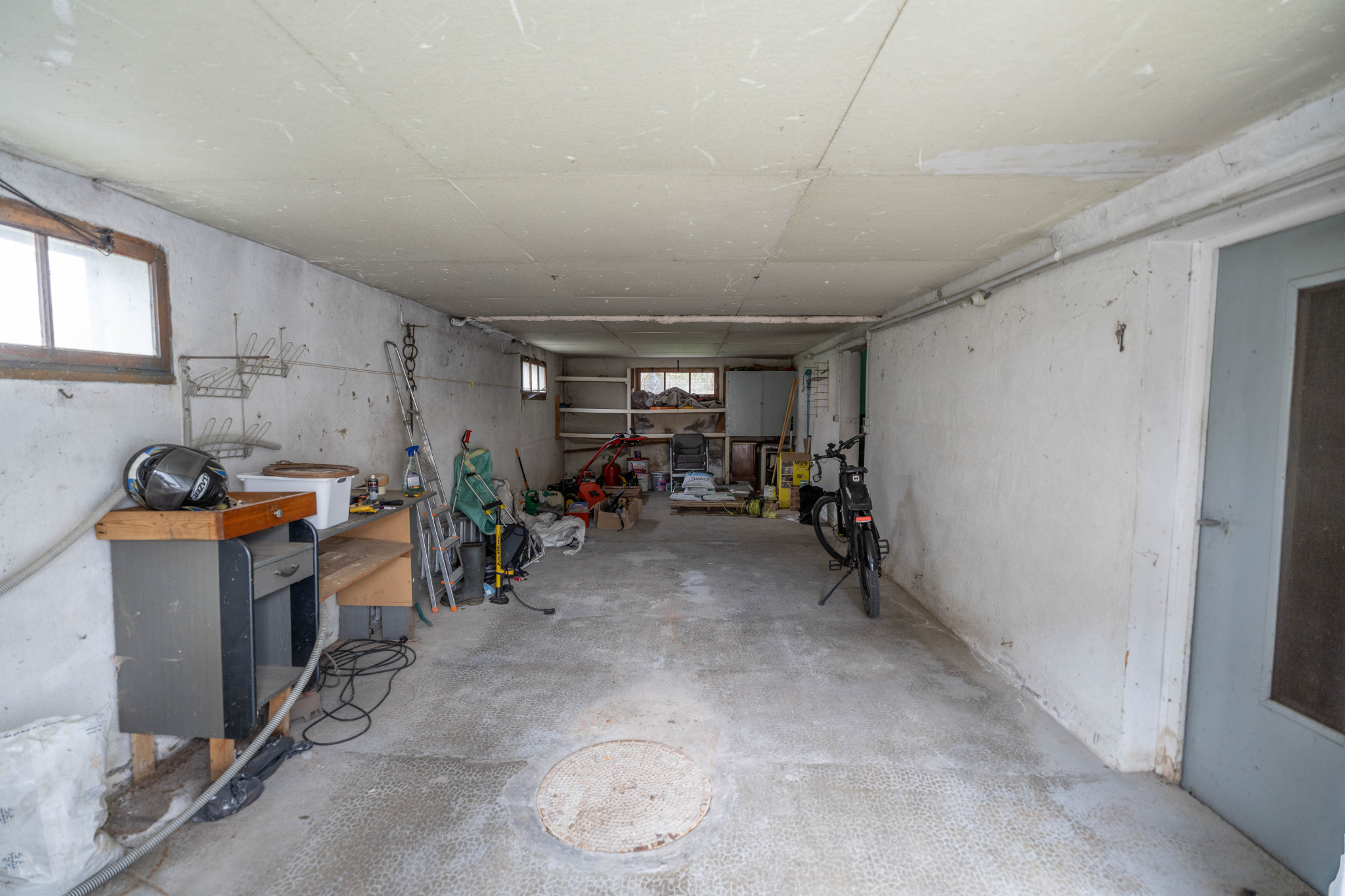 Composée d'un sous-sol complet semi enterré avec un double garage, une vaste cave, un espace stockage rangement atelier/chaufferie, un point d'eau.
