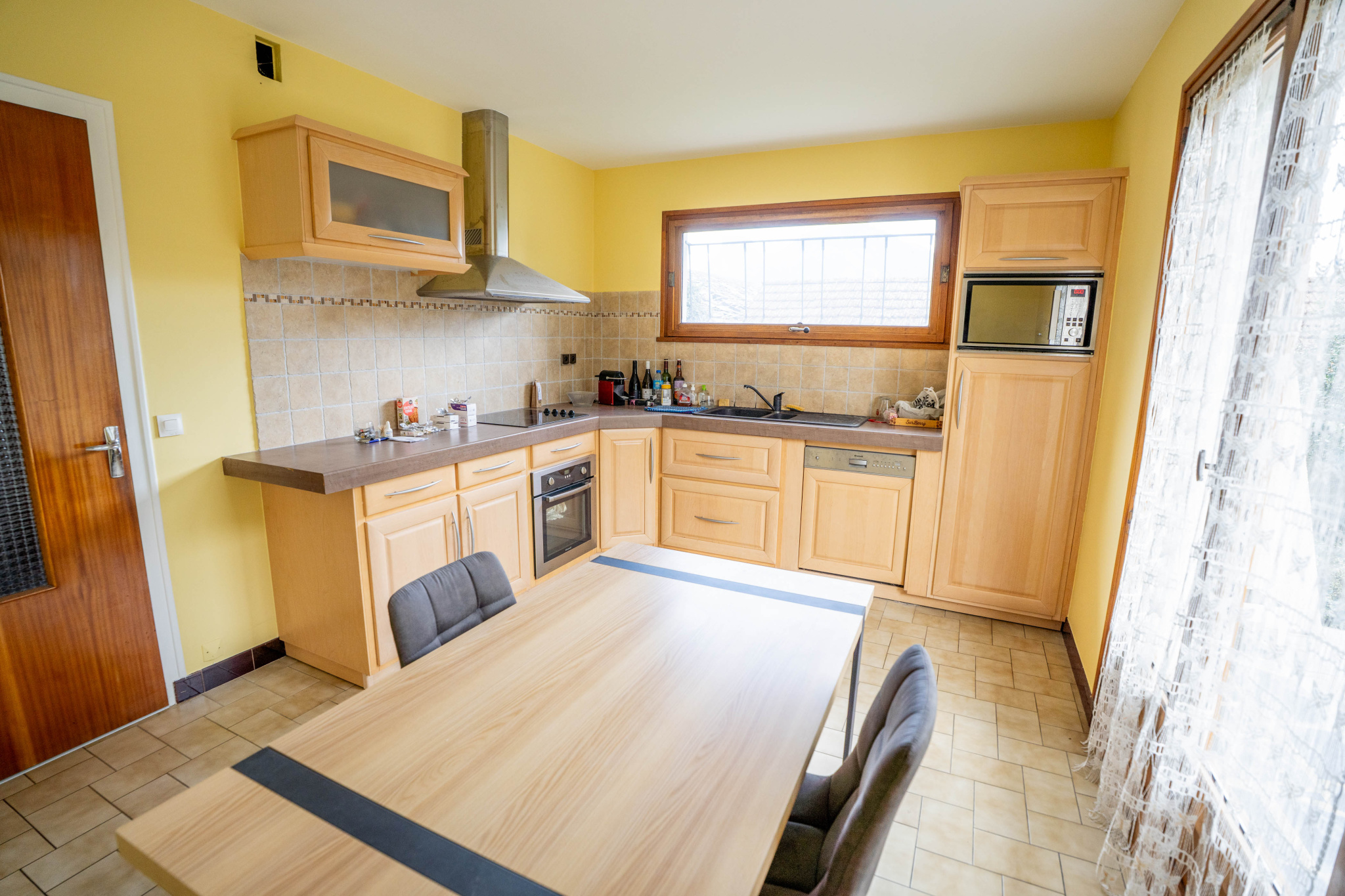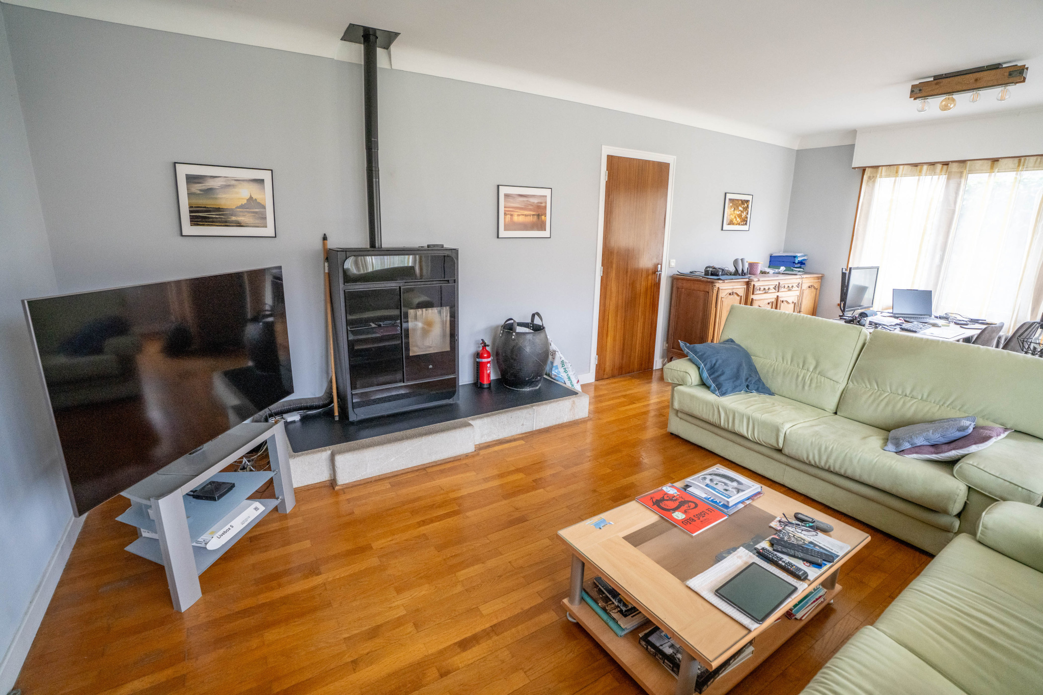 Un premier niveau en rez de chaussée avec un hall de dégagement desservant une belle pièce de vie avec poêle à granulés et accès terrasse et jardin, une cuisine indépendante équipée récente, trois chambres, une salle de bains et un wc. Un comble.