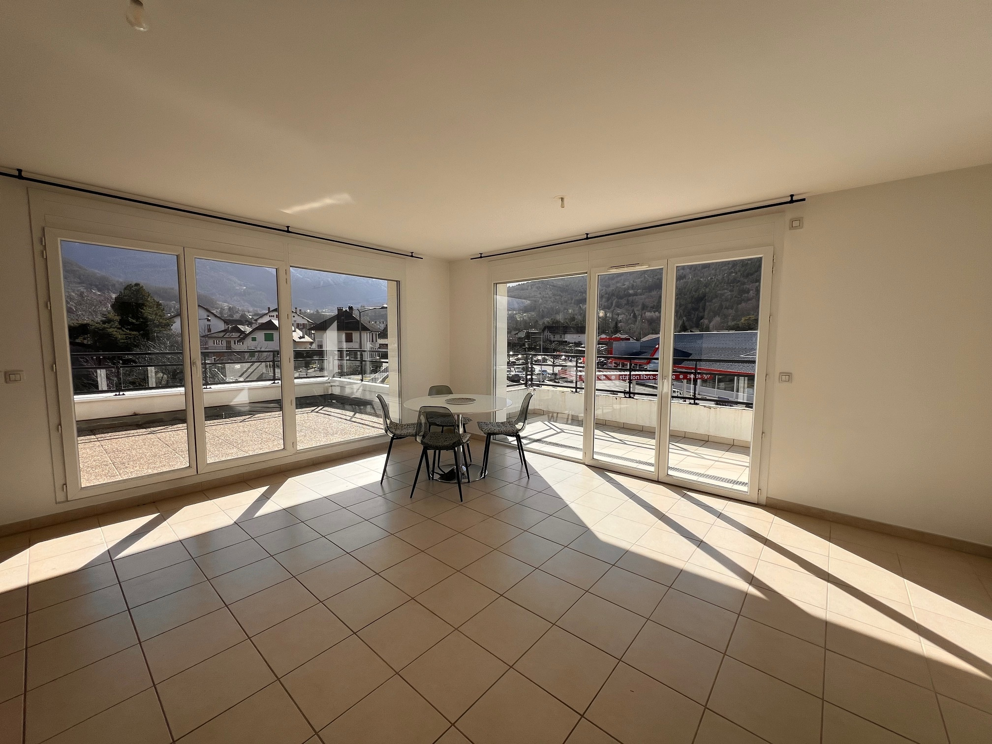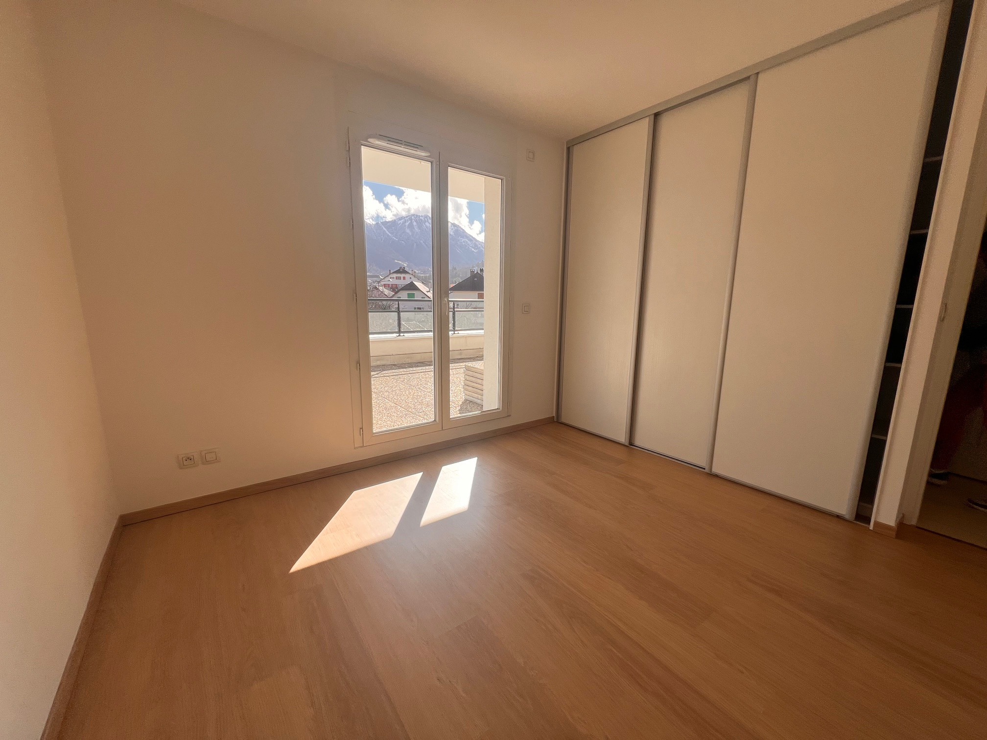 Appartement de 89,21 m2 au 2ème étage exposé sud, Sud/Est, composé d'un hall d'entrée avec placard, d'une cuisine équipée ouverte sur un vaste séjour, avec magnifique terrasse de 43 m2 vue montagnes, et balcon de 8 m2.