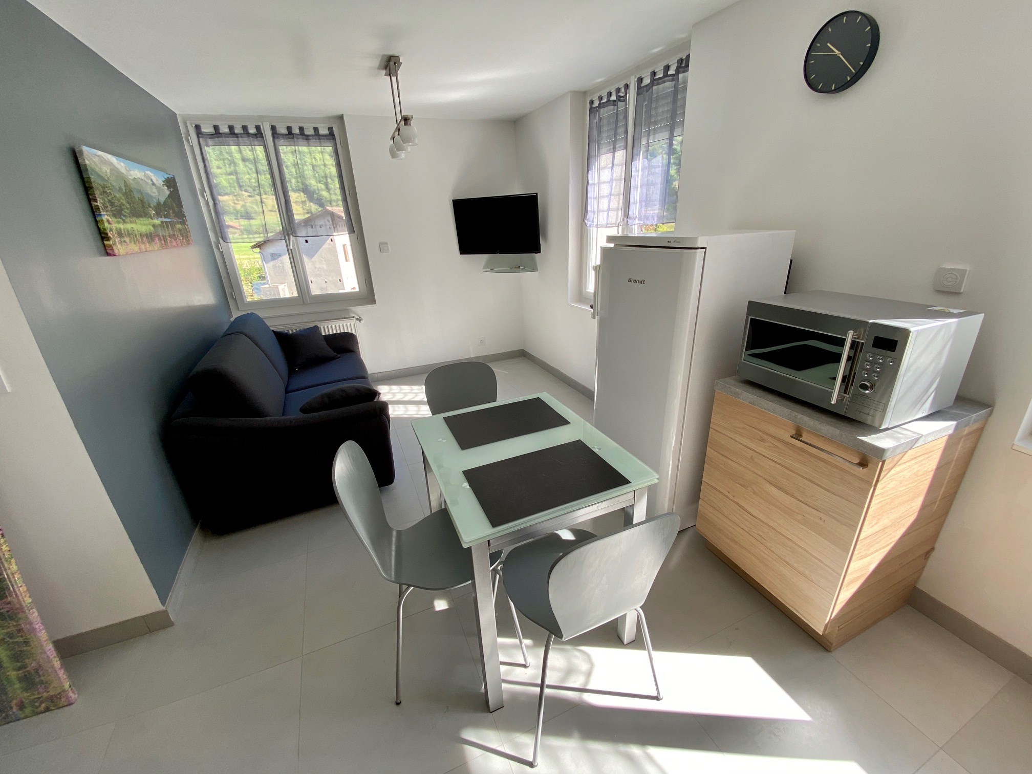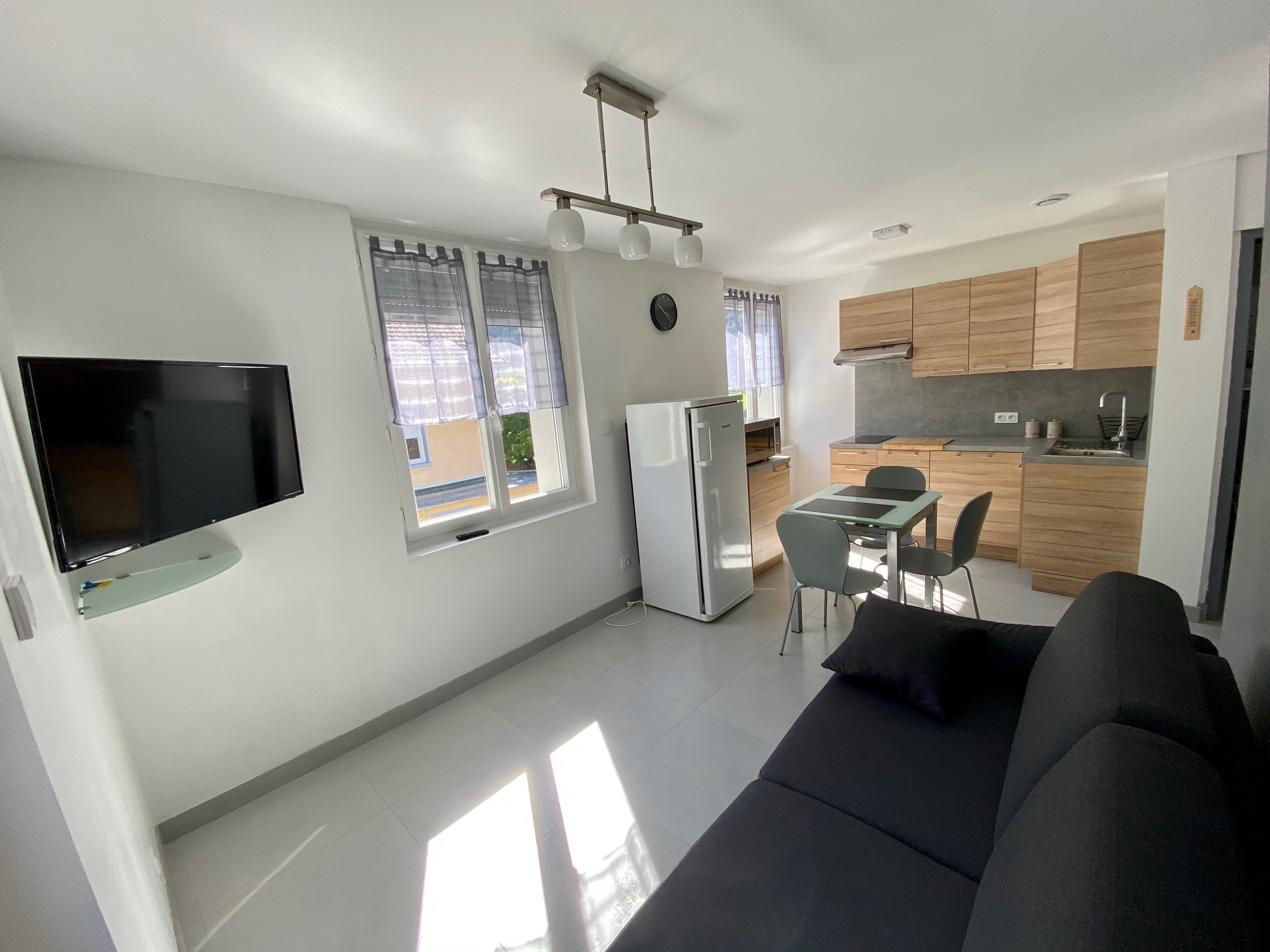 Type 1 bis meublé, au 1er étage, comprenant : un hall d'entrée, une chambre séparée avec salle d'eau, un WC, un salon/séjour ouvert sur cuisine équipée.
